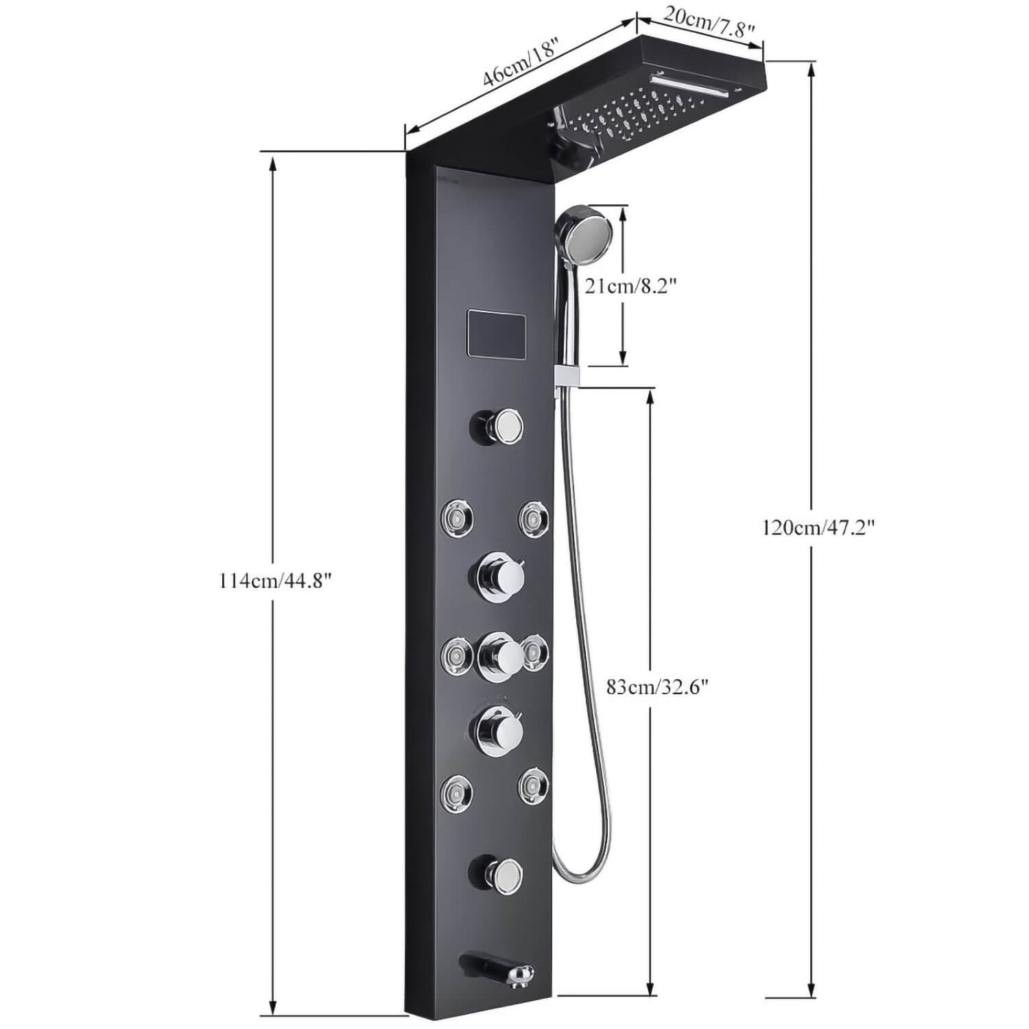Душевая панель с цифровым дисплеем и LED подсветкой Riu черная