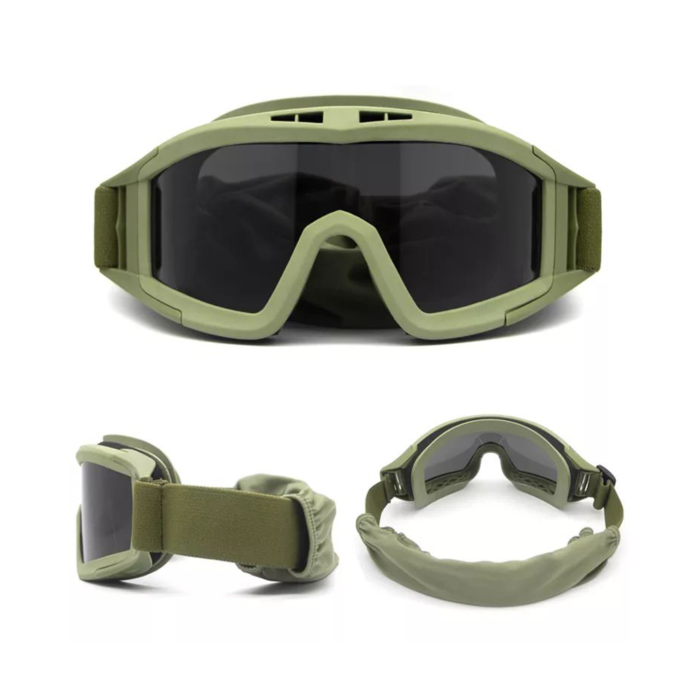 Очки тактические спортивные Shilder со сменными линзами демисезонные подойдут для любых видов спорта, где требуется защита глаз – альпинизм, сноубординг, горные лыжи, страйкбол и пейнтбол на открытой местности. Тактические очки поставляются со сменными линзами в количестве 3 штук прозрачного, желтого и черного цвета и удобным мешком для хранения. Желтые линзы рекомендуется использовать в пасмурную погоду, черные тонированные в яркую солнечную, а прозрачные подойдут для обычной носки. Корпус очков изготовлен из легкого ударопрочного материала. Фиксируются на эластичную ленту, длину которой можно регулировать. С помощью спортивных очков обеспечивается ветрозащита глаз, защита от пыли, снега и дождя.